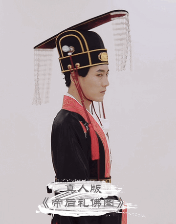 据龙门石窟研究院研究人员介绍,在孝文帝实行汉化服制改革后,帝王着冕旒,穿衮服,式样如汉式褒衣博带、宽袍大袖、衣裾较长的衣服。礼佛服饰也为冕服,头戴冕冠,身穿宽袖对襟上衣,内着方领袍等等。