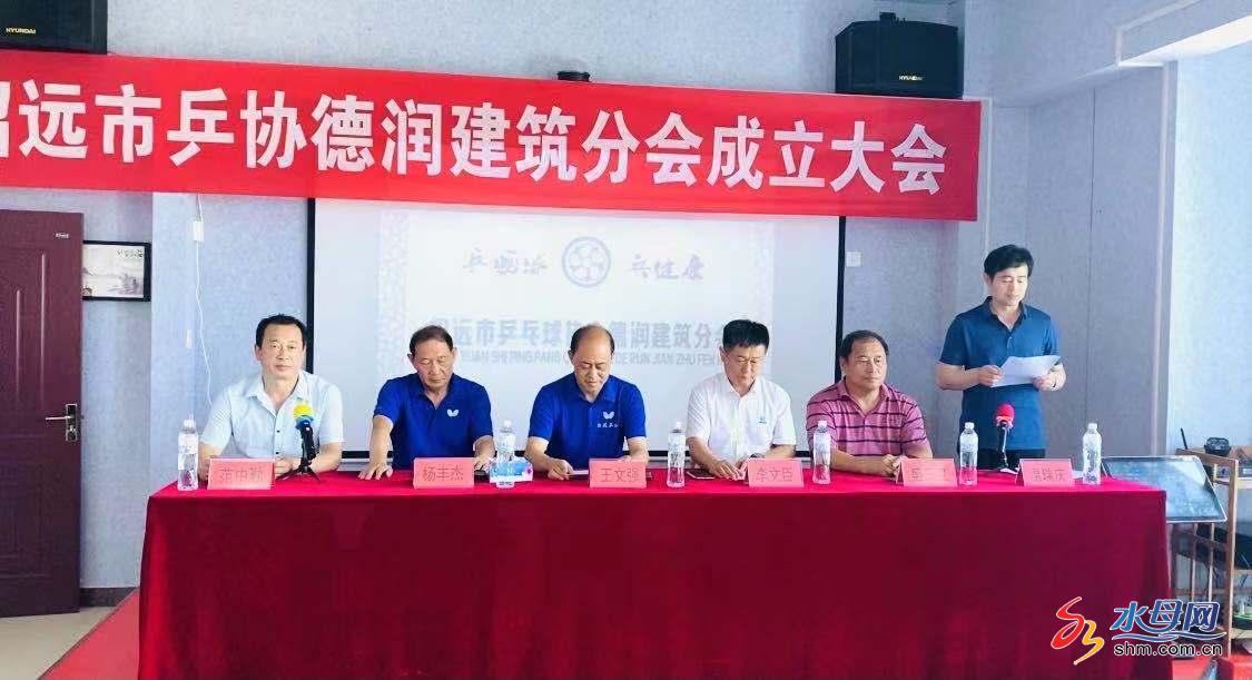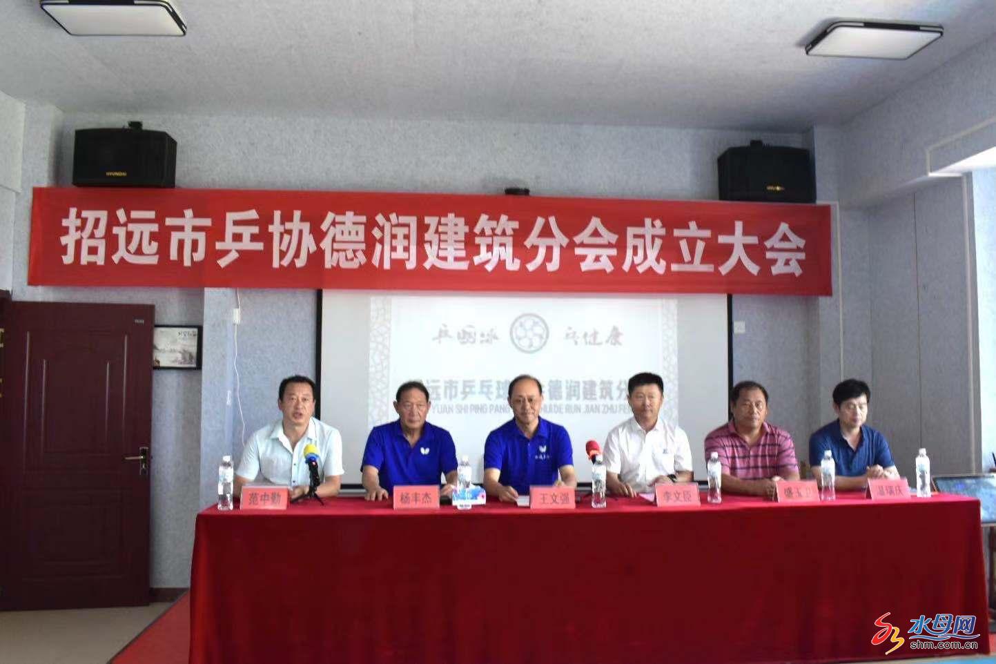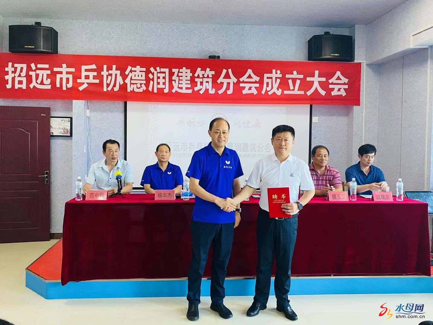 水母网7月12日讯(通讯员 刘天文 记者 李洪涛)7月10日上午9时30分,招远市乒协德润建筑分会成立大会在山东鸿福集团大厦文体活动中心隆重举行。烟台市乒协副主席、招远市乒协主席王文强等乒协领导,招远市德润建筑安装有限公司李文臣总经理出席会议并发表讲话。