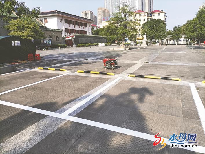 只见在福建会馆北广场东部区域,停车位已经划好。