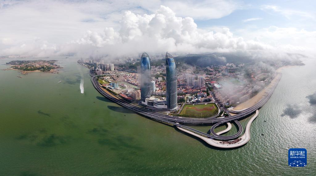 这是厦门演武大桥沿线及鼓浪屿(拼接照片,2017年8月24日摄)。新华社记者 姜克红 摄