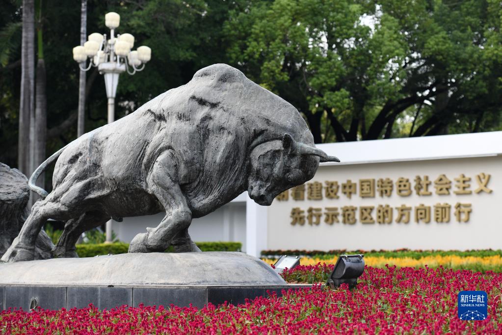 这是深圳深南大道的“拓荒牛”雕像(2020年10月12日摄)。新华社记者 梁旭 摄