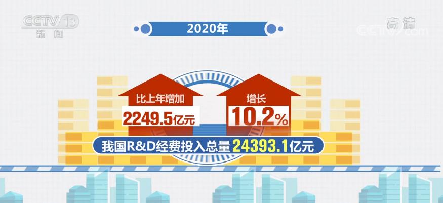 《公报》数据显示,2020年我国R&D经费投入总量突破2.4万亿,达到24393.1亿元,比上年增加2249.5亿元,增长10.2%,延续了“十三五”以来两位数以上增长态势,但受新冠肺炎疫情等因素影响,增速较上年回落2.3个百分点。