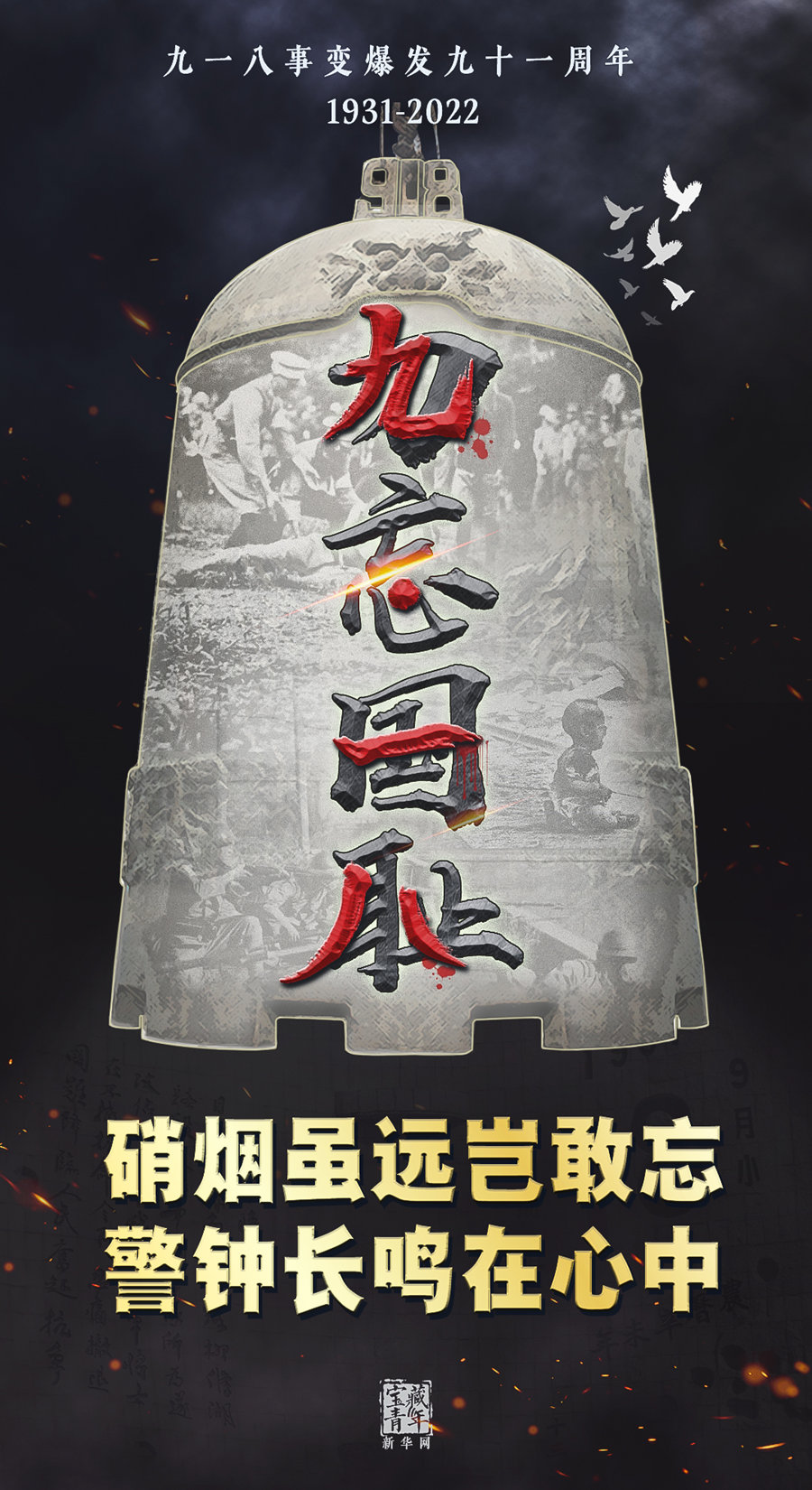 这是2021年9月18日拍摄的勿忘九一八撞钟鸣警仪式现场。新华社记者 潘昱龙 摄