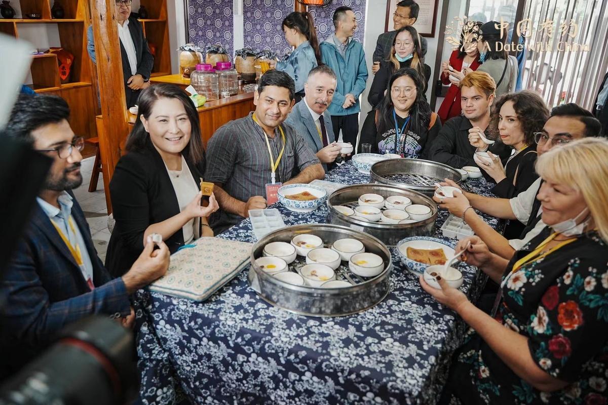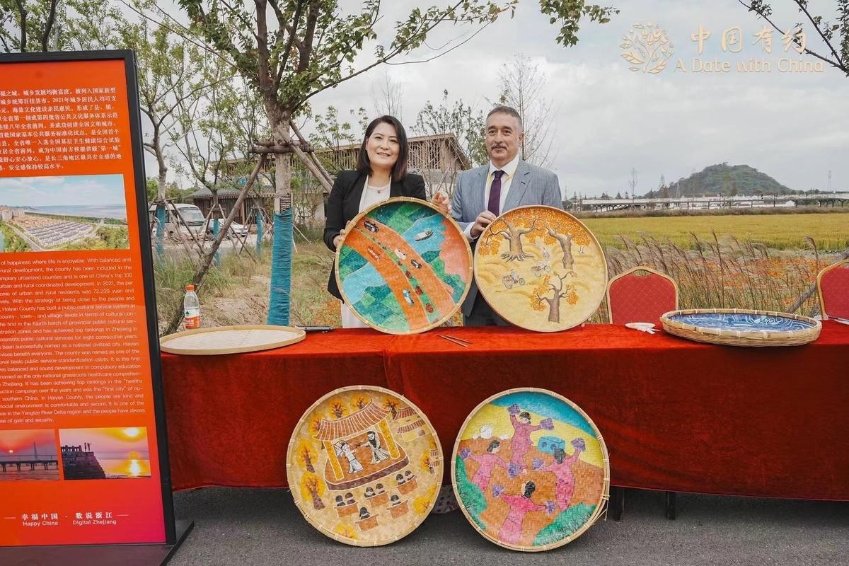 中国日报网11月1日电 (记者 董静)10月31日,“2022中国有约A Date with China”国际媒体主题采访团走进浙江嘉兴海盐县雪水港村,40余名外国媒体驻华记者、在华外籍网络名人及中国网络媒体记者在这里领略民俗文化之美,感受传统文化在传承中焕发的生机。