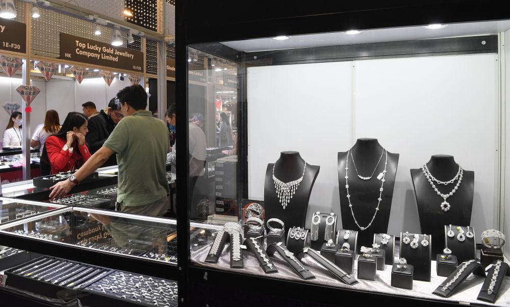 3月1日,参观者在珠宝展上挑选珠宝。新华社记者 陈铎 摄