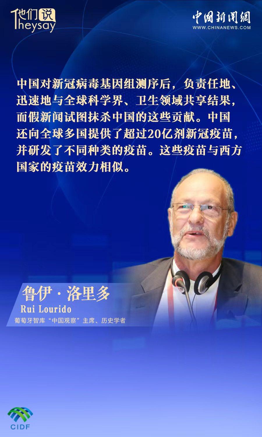 中新网3月6日电 (吴家驹)“我对中国过去三年中为全球抗疫所做的贡献持非常积极的看法。”近日,葡萄牙智库“中国观察”主席鲁伊·洛里多在接受中新网采访时表示。他指出,一方面,中国为全球抗疫贡献了疫苗和医疗用品等;一方面,中国依据科学意见,对自身抗疫政策进行了调整。