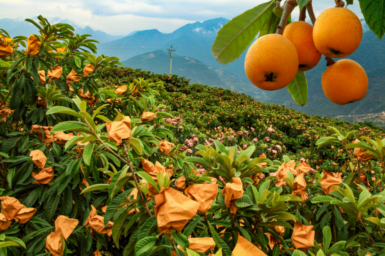 石棉县的发展底色不仅有红色,也有绿色。眼下,正值石棉“大五星”枇杷成熟上市,在一个个村口,金黄的枇杷正装箱装车,运往各地。