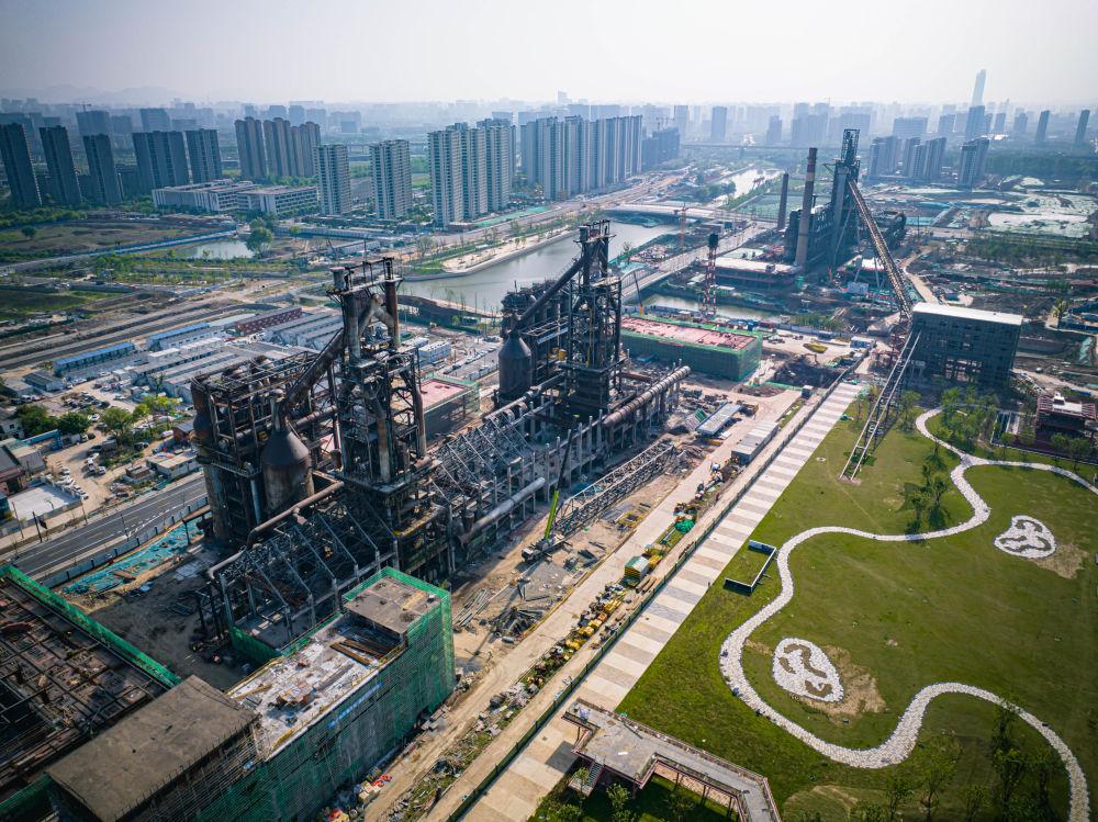 建设中的杭钢工业旧址公园(2023年4月17日摄,无人机照片)。新华社记者 江汉 摄