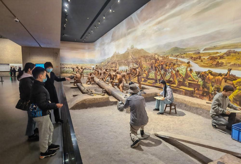 游客在位于杭州余杭的良渚博物院参观(2023年3月4日摄)。新华社记者 徐昱 摄