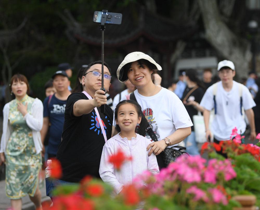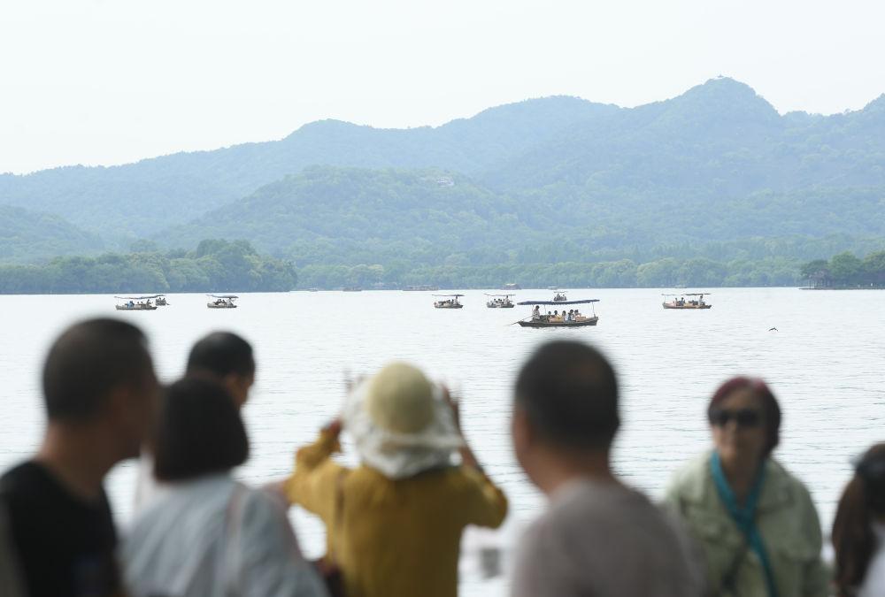 游客在杭州西湖游玩(2023年5月3日摄)。新华社记者 翁忻旸 摄