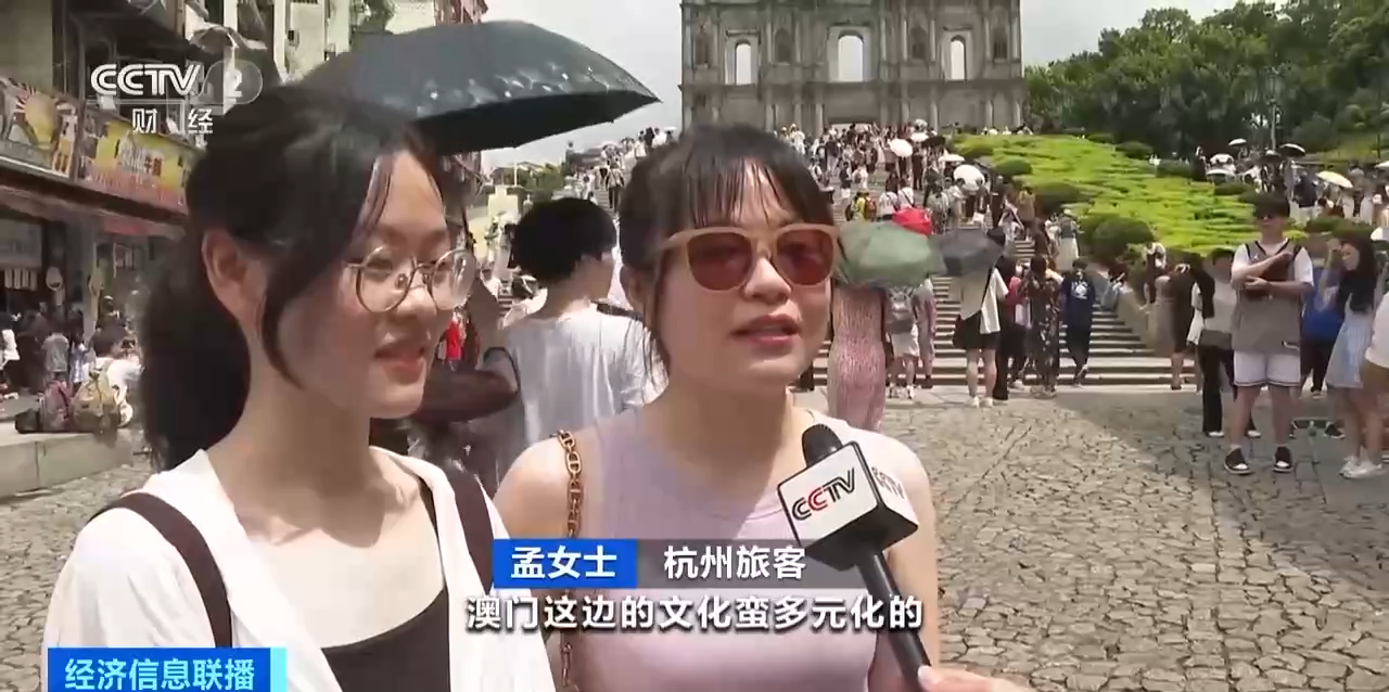 记者 肖中仁:我现在所在的地方是澳门大三巴牌坊前面的手信一条街,在这里,您可以通过客流量,最为直观感受到今年澳门持续升温的旅游热度。