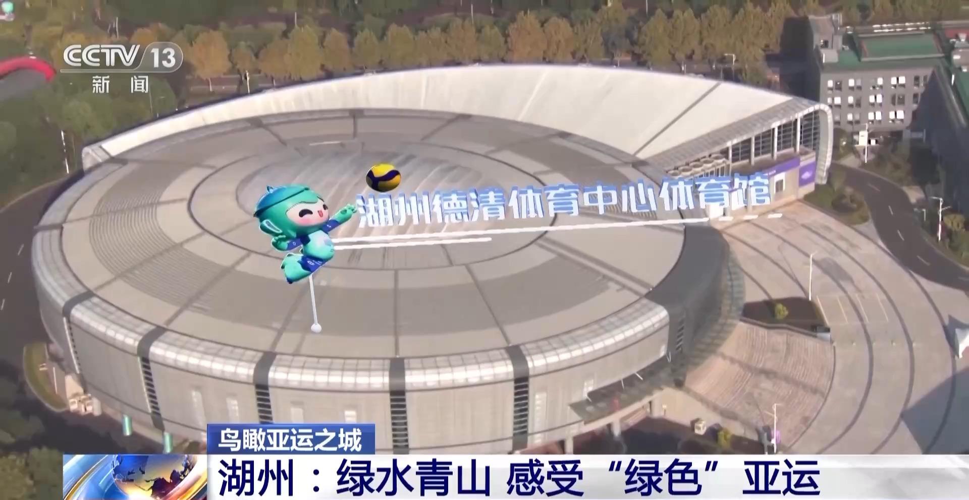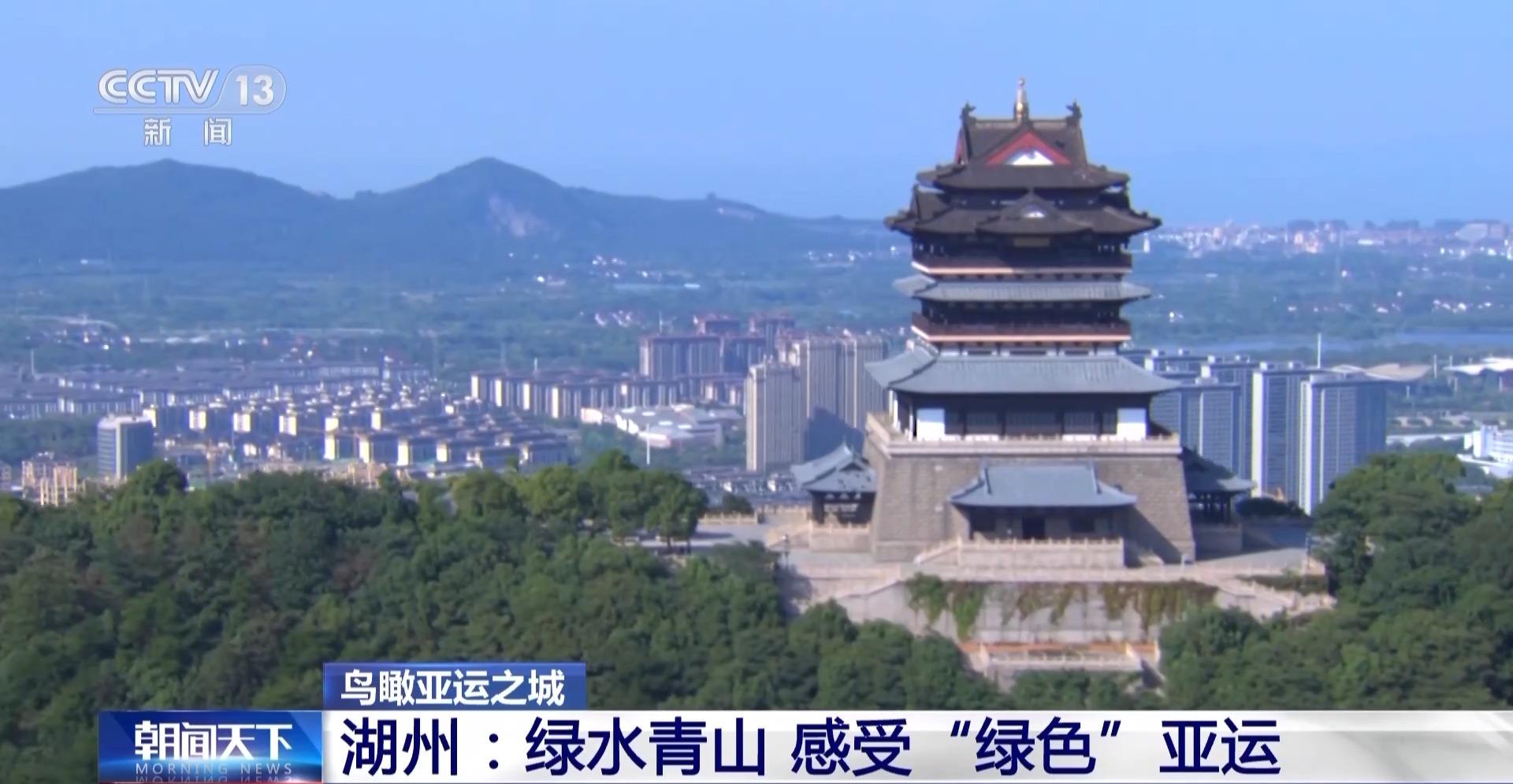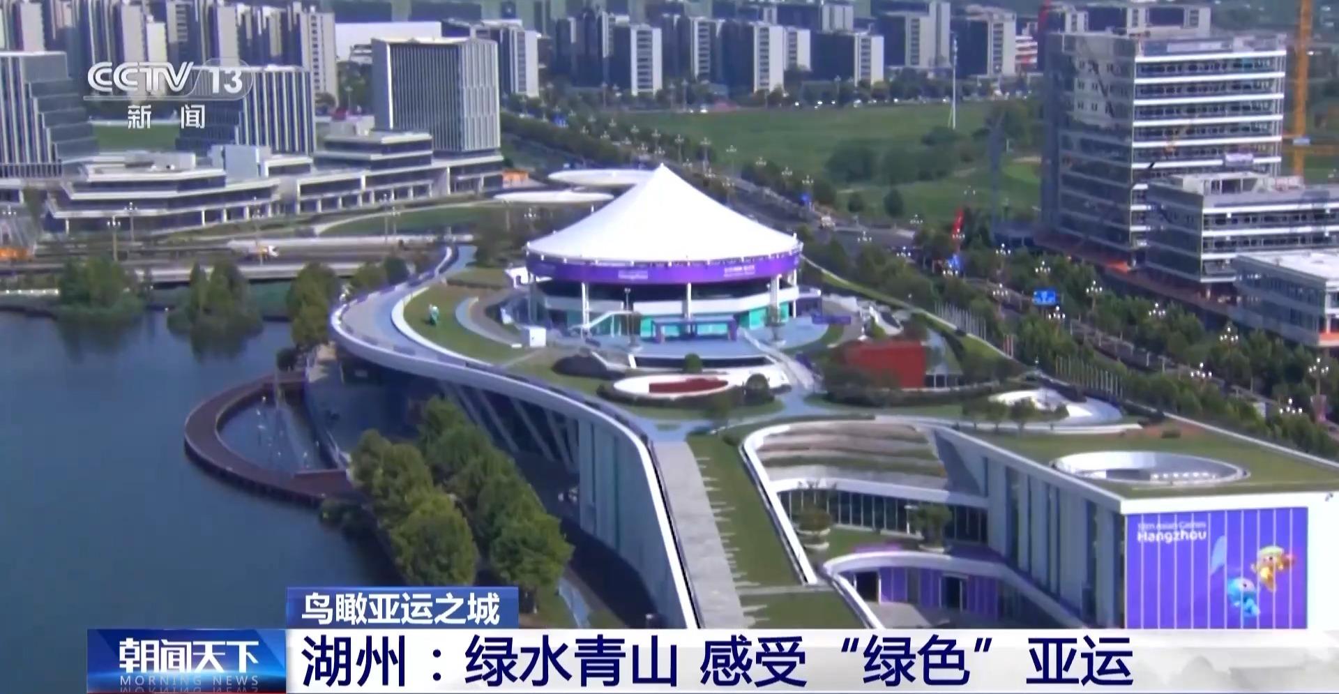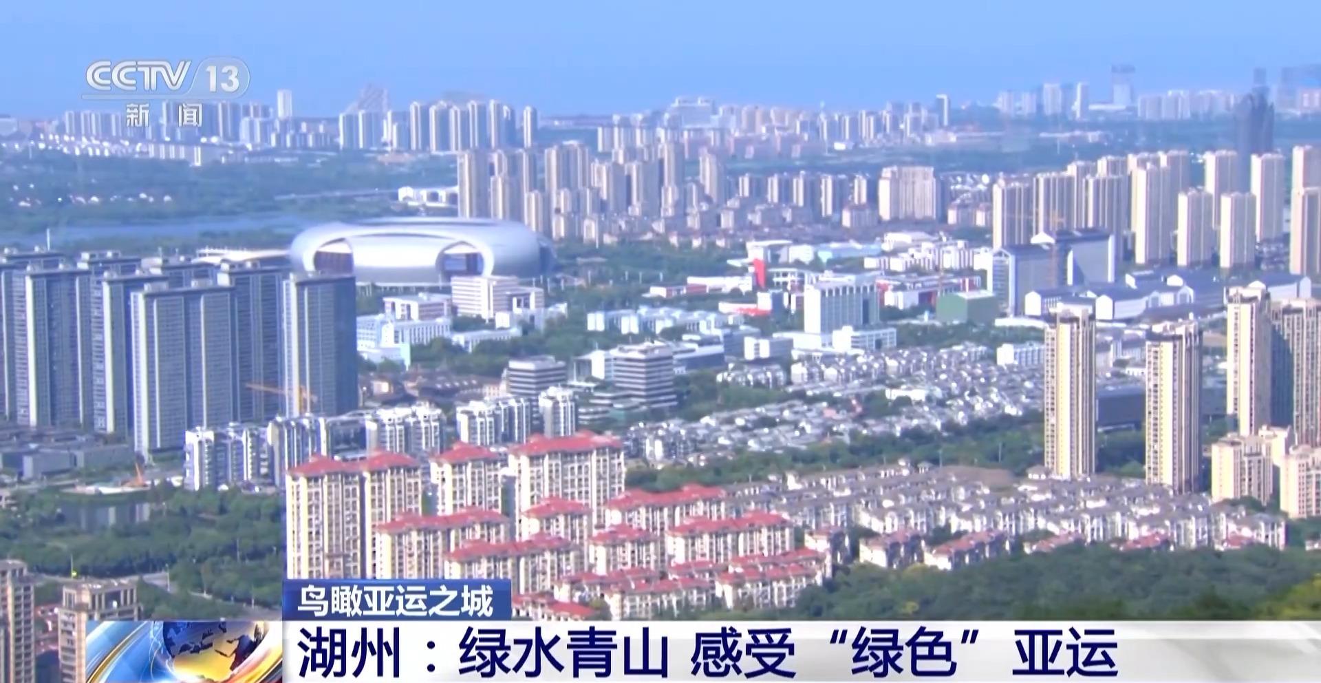 总台央视记者 赵晶:具有2300多年历史的江南古城——湖州是杭州亚运会的协办城市之一,今天我们一同从空中去看位于湖州赛区的亚运场馆。