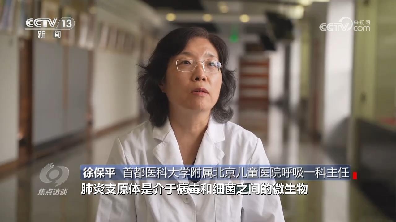 首都医科大学附属北京儿童医院呼吸一科主任徐保平:“肺炎支原体是介于病毒和细菌之间的微生物,主要通过呼吸道感染,主要临床表现是发热、咳嗽,在病初的时候表现是剧烈的、阵发性的、刺激性的干咳。”