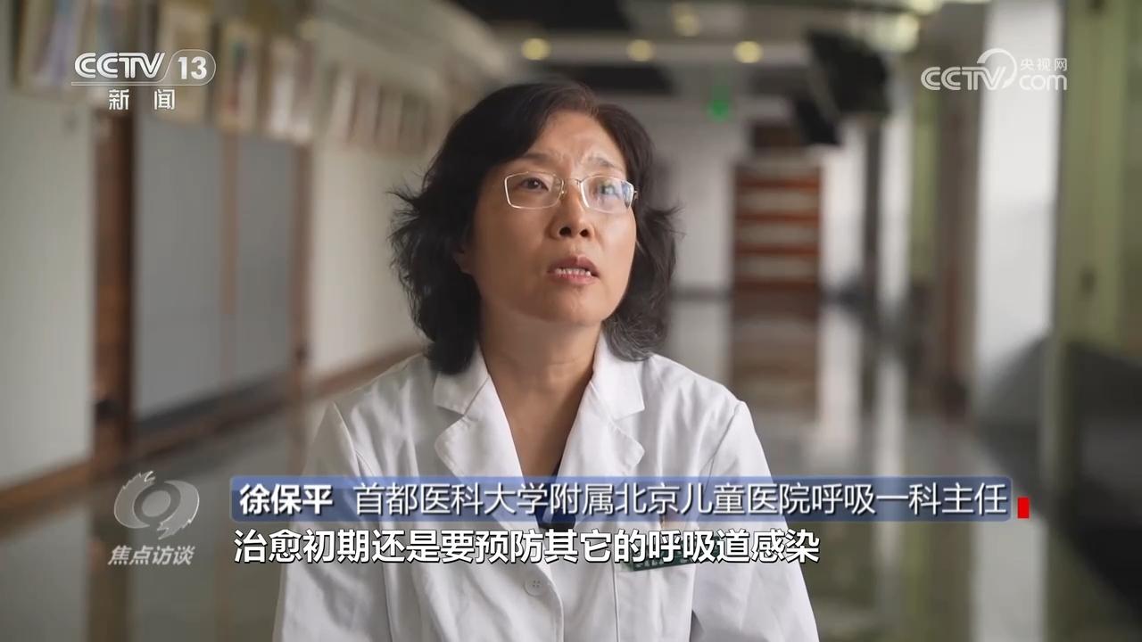 徐保平:“治愈初期还要预防其他呼吸道感染,因为这个时候整体的机体抵抗力低。另外,因为支原体肺炎或者支原体感染的时候,很多孩子有高热,影响食欲,所以在恢复期可以增加营养。还有就是循序渐进恢复体育锻炼,让孩子体质尽快恢复正常。”