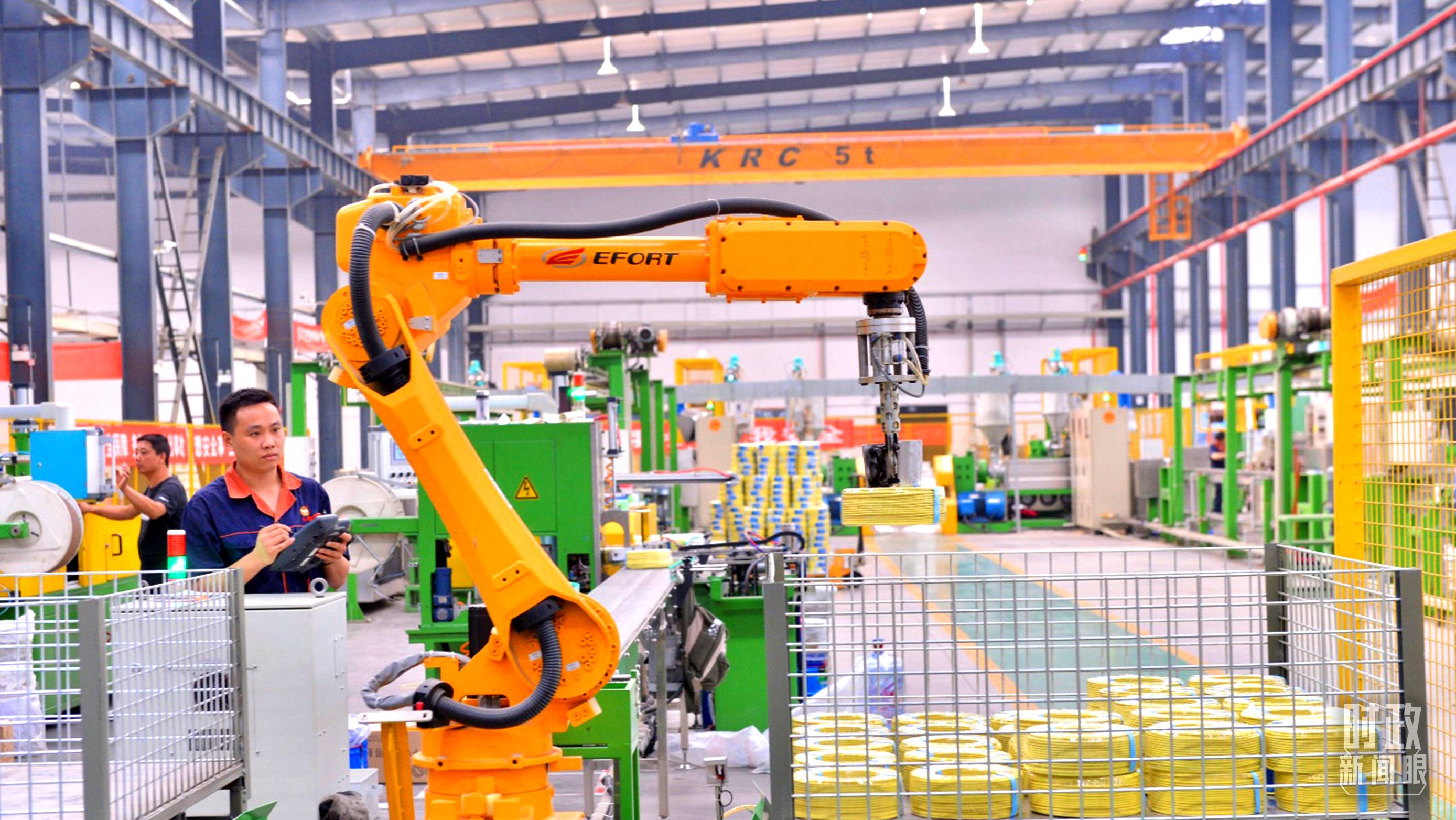 △贵州省贵阳市一家电线电缆企业的智能制造及智能仓储一体化车间。(总台记者张秀练拍摄)