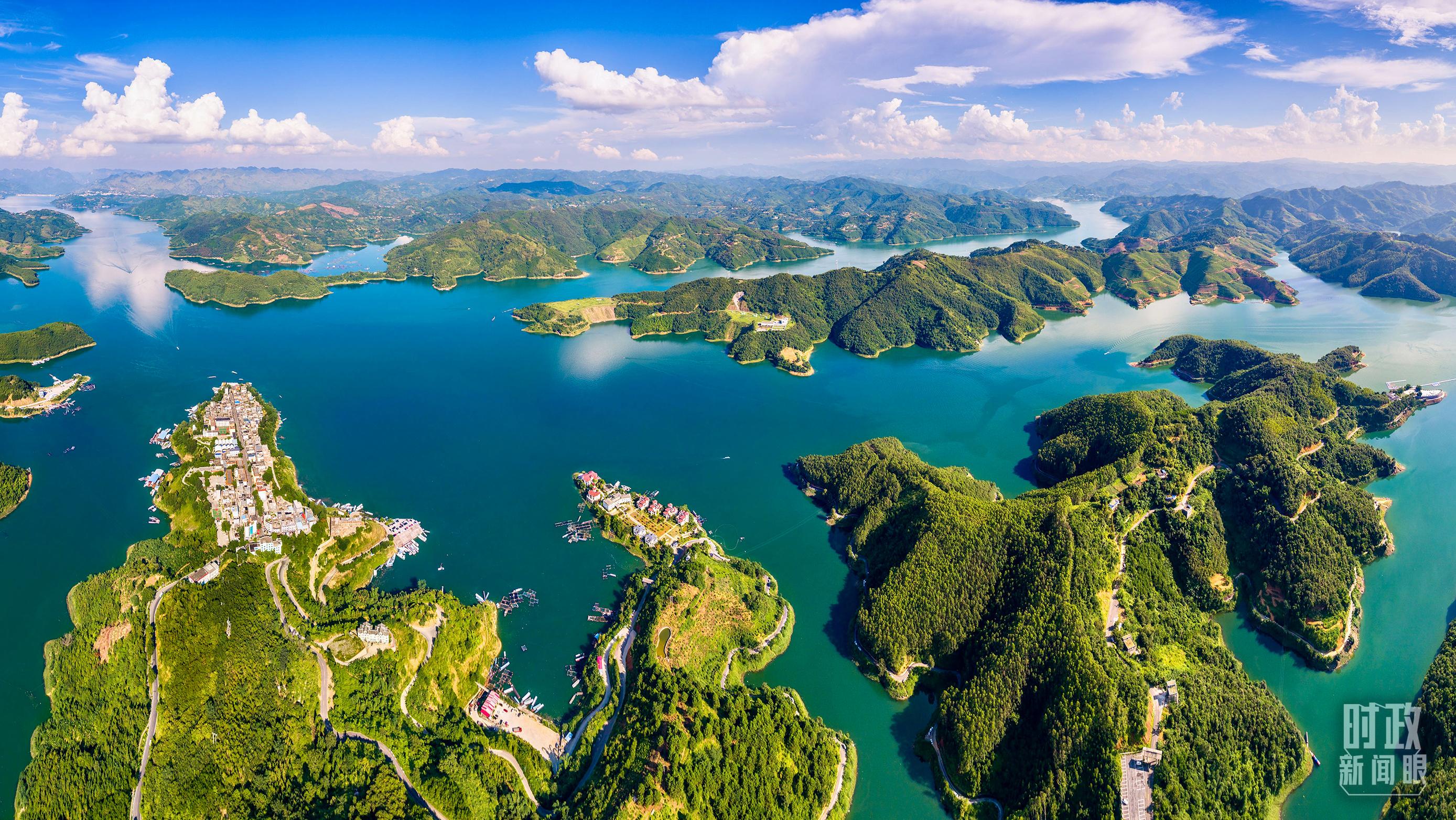 △珠江上游重要水源供给地——贵州省黔西南布依族苗族自治州兴义市万峰湖。(总台记者柳波拍摄)