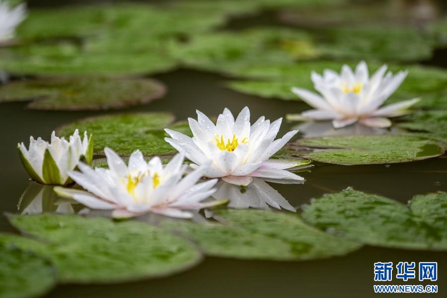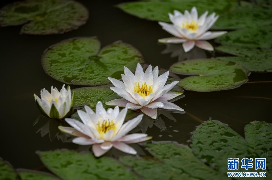 夏日时节,位于贵州省毕节市七星关区南山体育公园内的睡莲进入盛花期。雨后绽放的各色睡莲点缀在碧绿的莲叶间、娇艳欲滴、晶莹剔透,如诗如画。新华网发(李华摄)