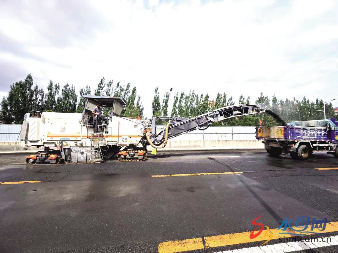“迎宾路通车后,项目部人员和设备都第一时间转场。罩面铣刨第一天,我们投入了100多名工人和30多台机械,加快推进作业。”胜利南路大修工程项目经理、烟台市市政养护中心工程队副队长林浦介绍。