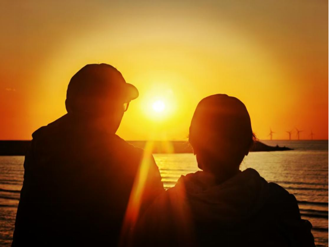 老伴儿喜欢摄影,他要“导演”一幅作品:“天气不错,我要照日落的景色,要照一幅以日落为背景的夕阳红。”不少老人坐在岸边的大石头上静静地看日落,夕阳暖暖地照在老人身上。老伴儿礼貌地说出他的创意和拍摄要求,两位老人很配合。一张“醉夕阳”的照片美美地生成了。更有意思的是人家真是一对老夫妻,漂亮的老大姐忙不迭地欣赏照片:“谢谢您啊,今年是我俩结婚四十五周年,这幅照片是最好的礼物!”老伴儿高兴地为这幅“醉夕阳”赋诗一首《夕阳红》: