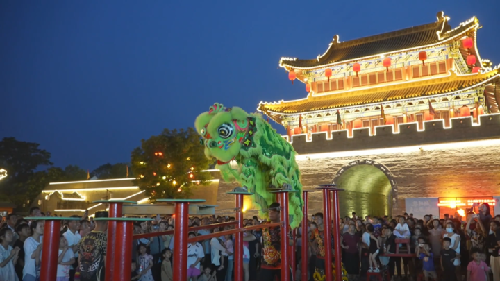 夜幕降临,河南省鹤壁市浚县古城灯光璀璨,烟火升腾,展现出别样的魅力与活力。当地文旅部门组织的民俗社火表演成为夜晚的亮点,吸引众多市民和游客前来游玩。