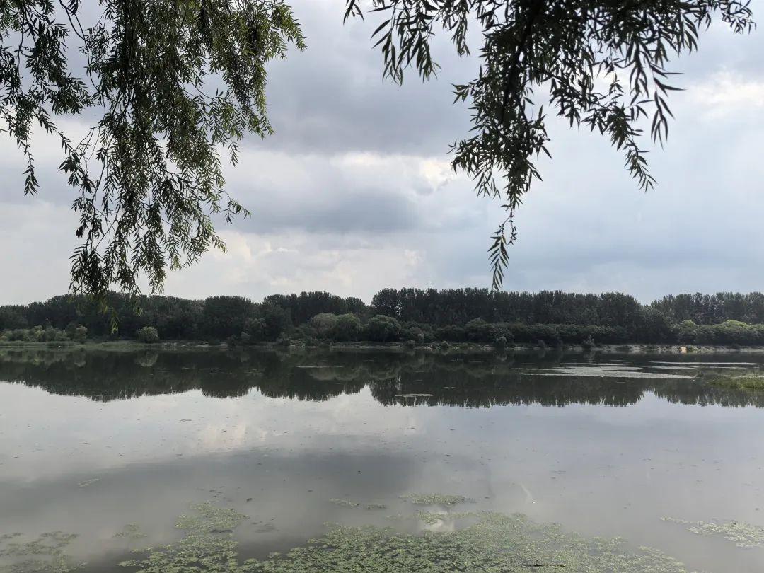 园子的东边是风景旖旎的夹河。因为离着海还有一段距离,所以在夹河生态园看不到那种河海交汇,海河激荡的情景。没有风,水面没有波纹,近岸的水面生着绿色的水藻。有一片水面长满了芦苇,如广袤的平原上铺展开的绿色长廊,高低起伏。天空的云灰白冲淡,形状万千,正有一团像马儿昂头奔跑的云落在水面上,如两张纸上画了同样的风景叠起来又伸展开一般,给人以丰富的想象。顺着沿河路的另一侧,在生态森林的路边,隔不远处有关于芝罘八景的碑刻,七八个。其中一个碑刻上一首七律《长堤新柳》是这样写的:“城边春晓绕芳丛,万柳堤中一路通。笼岸已惊溪尽绿,隔条忽讶杏偏红。波光摇荡轻鸥外,树影参差夕照中。对对黄鹂歌不尽,似将谢雪咏东风。”诗是清朝谢乃实所作。谢乃实是福山人,清朝康熙二十七年进士,任江南睢宁知县。在任期间,整顿税政、减轻百姓负担,后因得罪贪官被诬陷辞官归乡。从诗中能读出其刚直正洁的性情。夹河水波浩渺,远处海天相连,两岸绿树成荫,花红柳绿,倘若春风送暖,夕阳晚照,夏日葱郁,定能看到城边春晓,芳草连天,树影参差,长河逶迤的盛景,这诗也是触景生情,有感而发了。