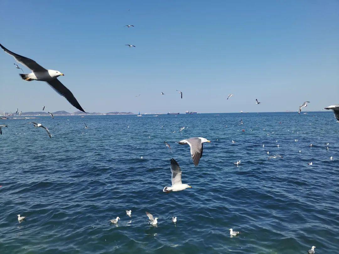 如果你是一位爱簪茉莉花的江南姑娘,芝罘的海便是那一位提裙踮脚来迎接你的邻家阿姊——退潮时缓缓露出的浅灰滩涂是她半掩的罗袜,茸软苔藓理所当然地化作她裙角所认真手绣的一缠缠浅绿枝纹,贝壳缀成的紫金耳坠在风中轻轻摇晃着,把她的多情与妩媚彰显得淋漓尽致,而当海鸥以极快速度飞掠过海面的猛一刹那,白翅恰似她发髻上斜插的象牙玉簪,把朵朵云絮均梳成蓬松的堕马髻,奇幻缥缈。