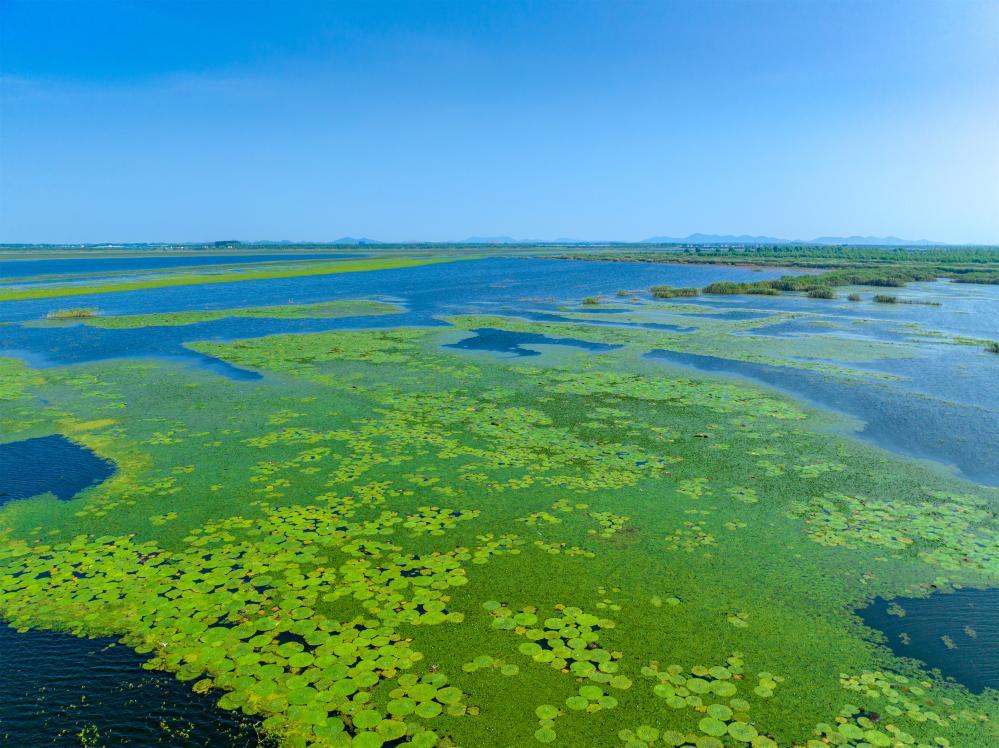 俯瞰夏季的沉湖湿地。(魏斌 摄)
