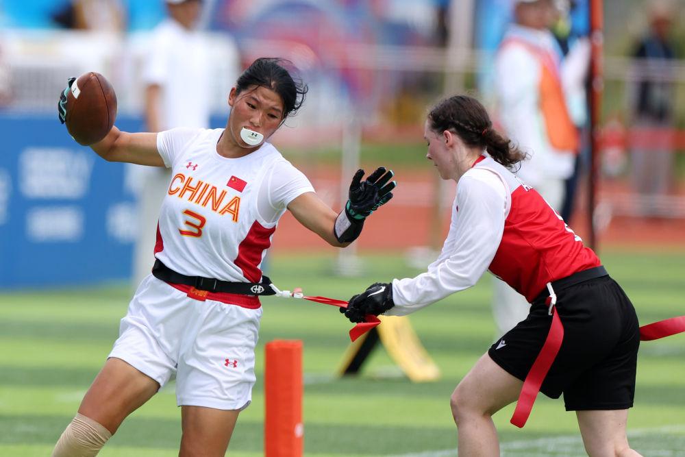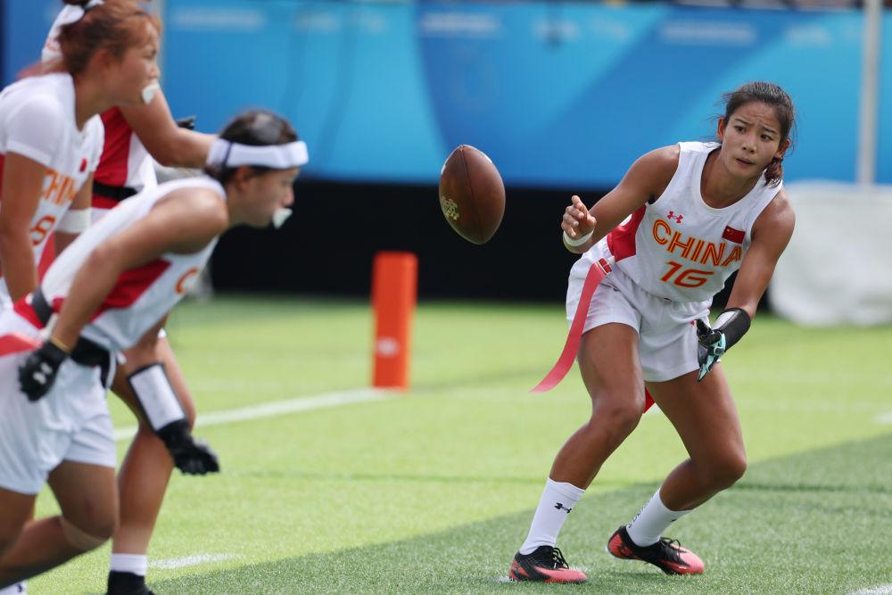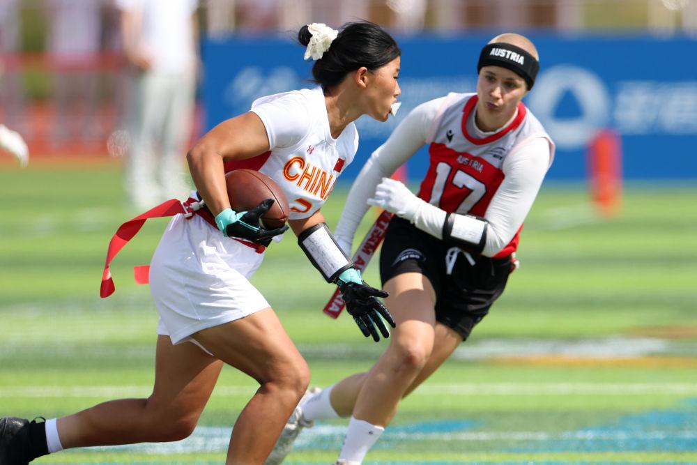 成都世运会女子腰旗橄榄球比赛首日,中国队上演正式比赛首秀。这支组队集训仅3个多月的“神秘之师”,在首场迎战世界排名第四的奥地利队的比赛中,只以2分惜败。