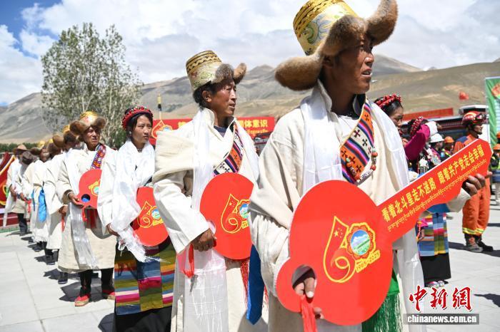 图为西藏定日县森嘎村首批民房入住仪式现场。贡嘎来松 摄