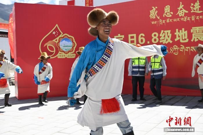 图为西藏定日县森嘎村村民载歌载舞庆祝乔迁之喜。贡嘎来松 摄
