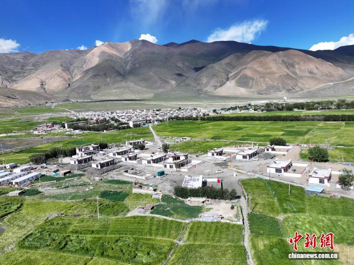 图为新建成的西藏定日县森嘎村。(无人机照片)贡嘎来松 摄