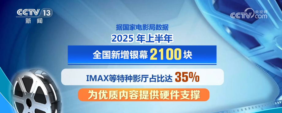据国家电影局数据,2025年上半年,全国新增银幕2100块。其中,IMAX等特种影厅占比达35%,为优质内容提供硬件支撑。