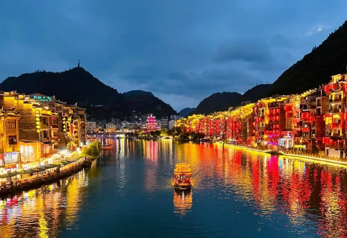 漫步在河边,感受着夜晚的凉风,看着水中摇曳的灯光倒影,仿佛穿越时空,回到了那个繁华的古代商贸重镇。此时的镇远,既有宁静祥和的一面,又不失繁华热闹的氛围,让人沉醉其中,流连忘返。