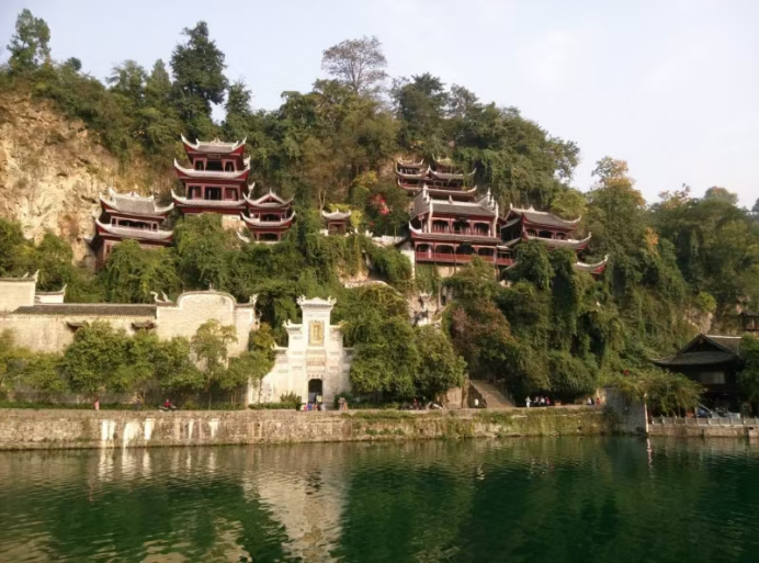 而青龙洞古建筑群,无疑是镇远古城最耀眼的文化瑰宝之一。它集儒、释、道三教于一体,依山而建,错落有致,气势恢宏。站在祝圣桥上,极目远眺,青龙洞宛如一幅立体的山水画卷,镶嵌在陡峭的崖壁之上。飞阁流丹,层楼叠嶂,与舞阳河的碧波绿水相映成趣。“峭嶂插天多隐寺,轻舟入峡即为家。”青龙洞的建筑风格独具特色,既有佛教寺庙的庄严肃穆,又有道教宫观的清幽雅致,还有儒家书院的文化底蕴。在这里,三教和谐共处,相互交融,共同演绎着中国传统文化的博大精深。沿着蜿蜒的石径步入青龙洞,仿佛踏入了一个与世隔绝的仙境。寺内香烟袅袅,钟磬悠扬,让人的心灵在这喧嚣的尘世中寻得了片刻的宁静。抚摸着斑驳的墙壁,凝视着古老的佛像,仿佛能感受到古人对信仰的虔诚与执着。