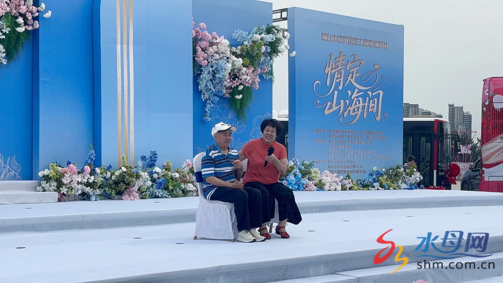 婚礼仪式开始前,受邀参加的“金婚”夫妇代表翟明申和姜淑爱老人上台分享了婚姻心得。“回想起我们俩当初结婚,没有彩礼没有仪式,我带着几块母亲做的乳山喜饼就去了他的部队,在会议室热闹了一下就算结了婚。”姜淑爱老人动情地说,和老伴儿风雨同舟53年,觉得夫妻之间最重要的是相互理解,希望迈入婚姻殿堂的新人们也能相互扶持,携手一生。