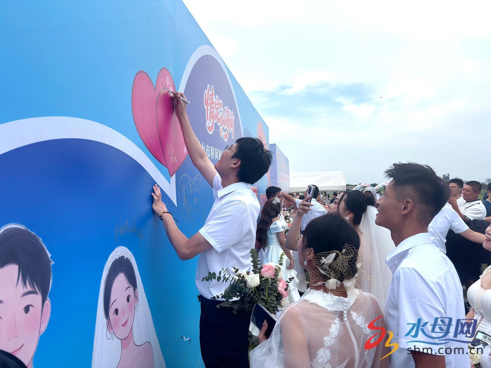 在新人们巡游的同时,婚礼仪式主会场芝罘区海滨飞翔公园已安排妥当。上午9点10分,婚车抵达公园广场,新人们携手走过“文明长廊”。长廊主要呈现“婚俗演变·文化传承”脉络,设置“婚事新办”主题签名墙,新人们纷纷签下姓名,并按下象征永恒承诺的手印。