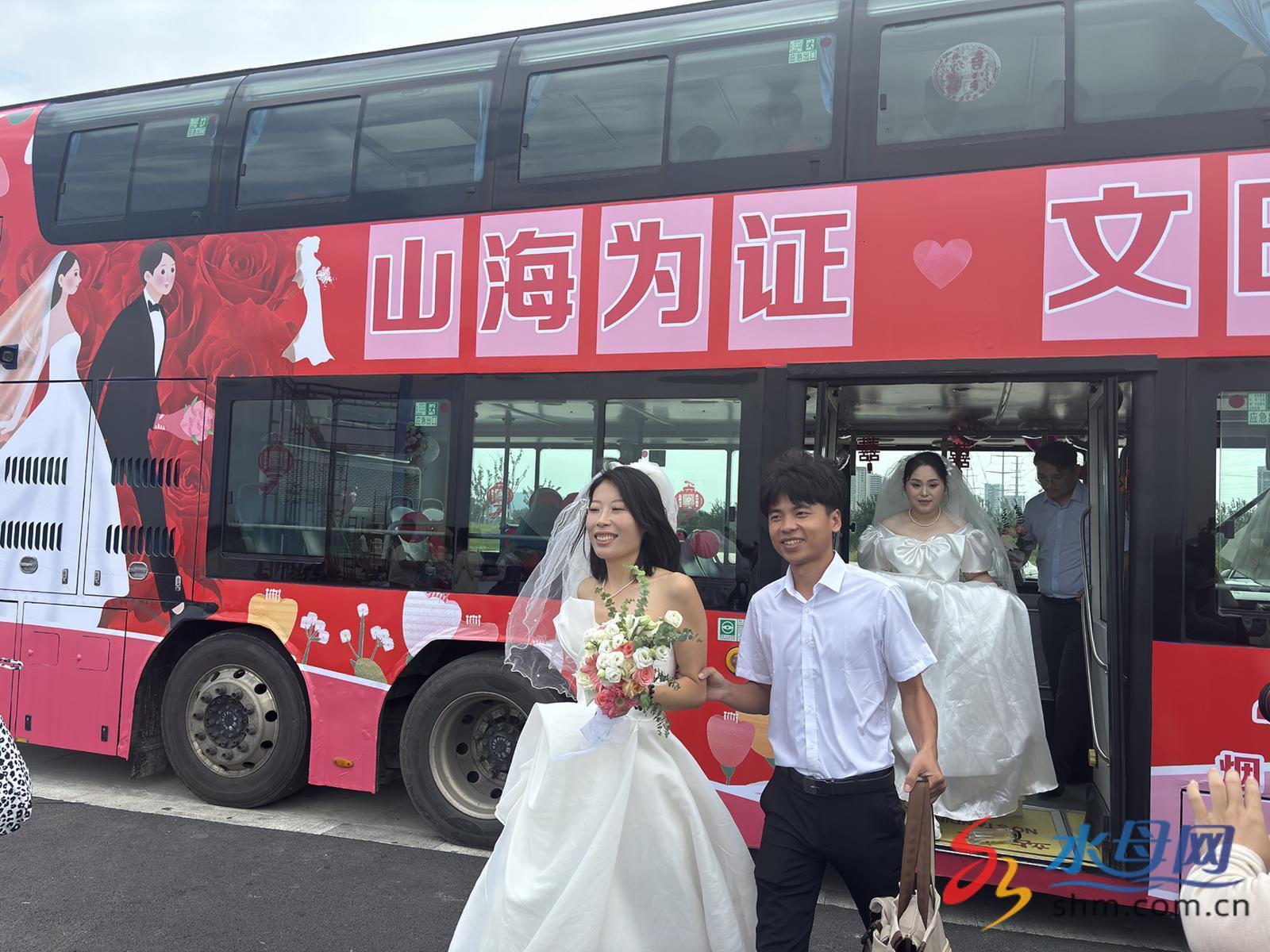 在“公交婚车”的每个“站点”,都安排了志愿者向路人分发移风易俗手册,让婚车成为流动的文明新风宣传站。婚车行驶至海滨路段时,新人集体向车窗外挥手致意,然后下车合影留念、发喜糖,与沿途市民共享喜悦,将简约婚礼的幸福感传递给整座城市。