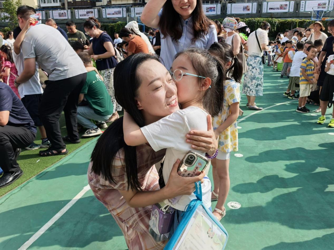 在全场的期待中,各班班主任将写着祝福与鼓励的小红花逐一送到孩子们手中。随后的亲子互动环节家长们纷纷与孩子拥抱、亲吻、击掌,一个个温馨的瞬间,不仅传递着亲情,也让孩子们更勇敢地迈出了融入新环境的第一步。