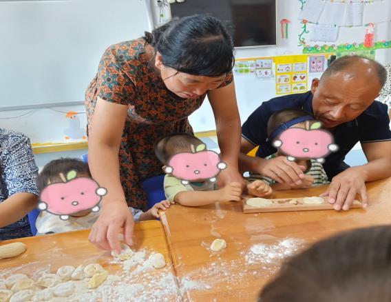 在动手环节中,老师逐步演示了和面、揉捏、包馅、塑形等全套制作技巧。孩子们在老师的悉心指导和家长志愿者的帮助下,兴致勃勃地动手操作,揉捏面团、小心包馅、认真塑形……一个个造型各异、充满童趣的巧果坯很快摆满了桌面。现场气氛温馨而热烈,欢声笑语不断。
