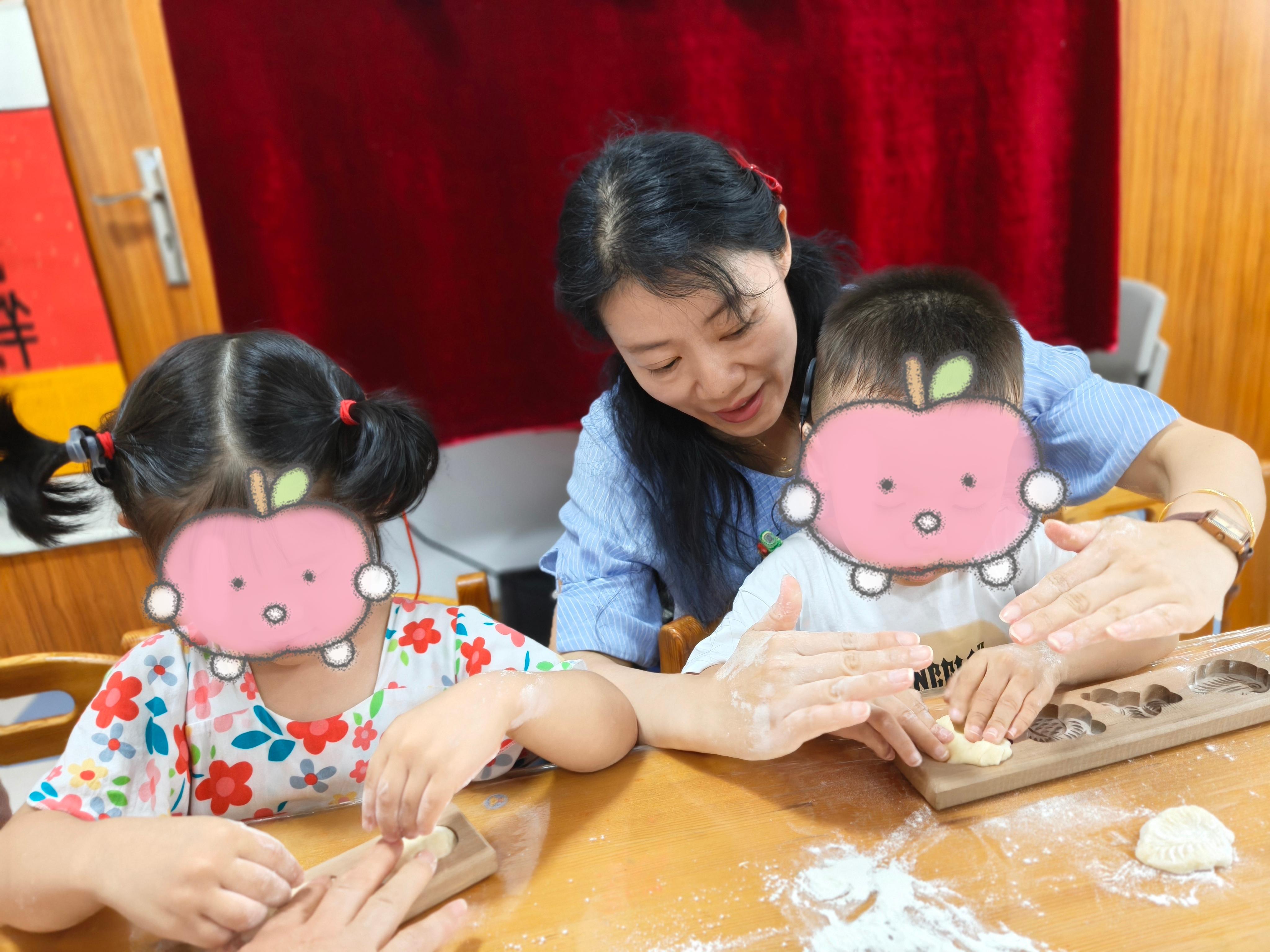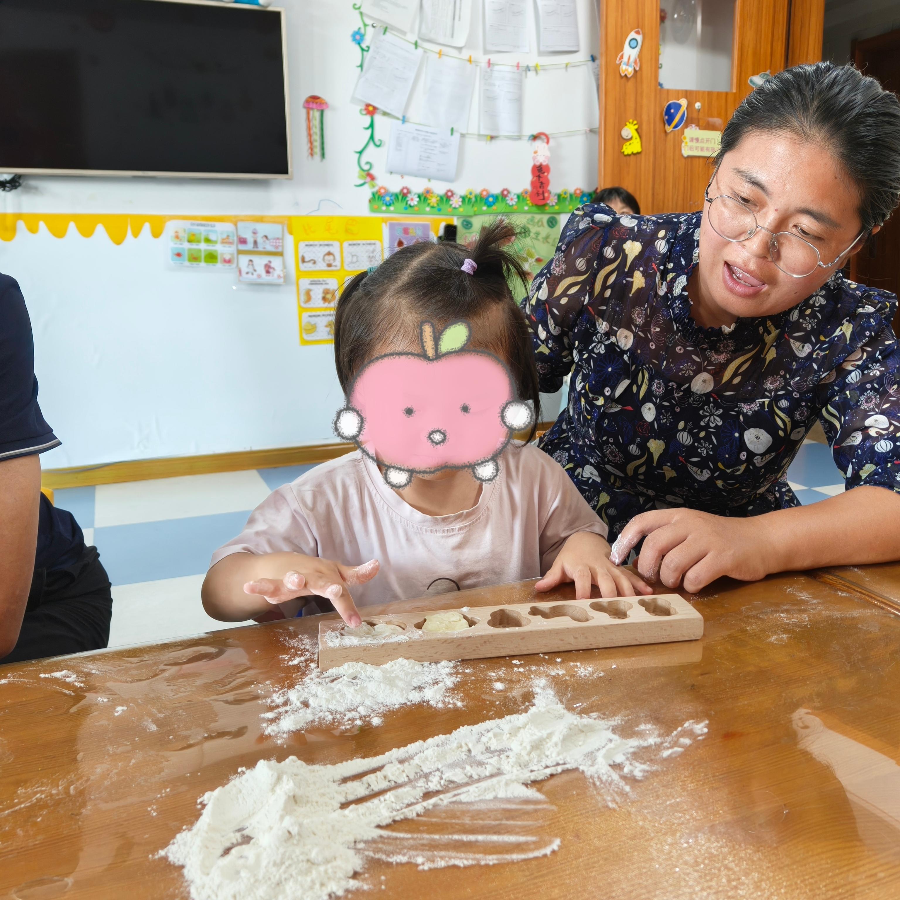 活动前,老师们早早准备好了金黄的面团、可爱的模具和安全的小案板。活动伊始,老师细致讲解了巧果的制作、原料和配方,孩子们充满了好奇和期待。