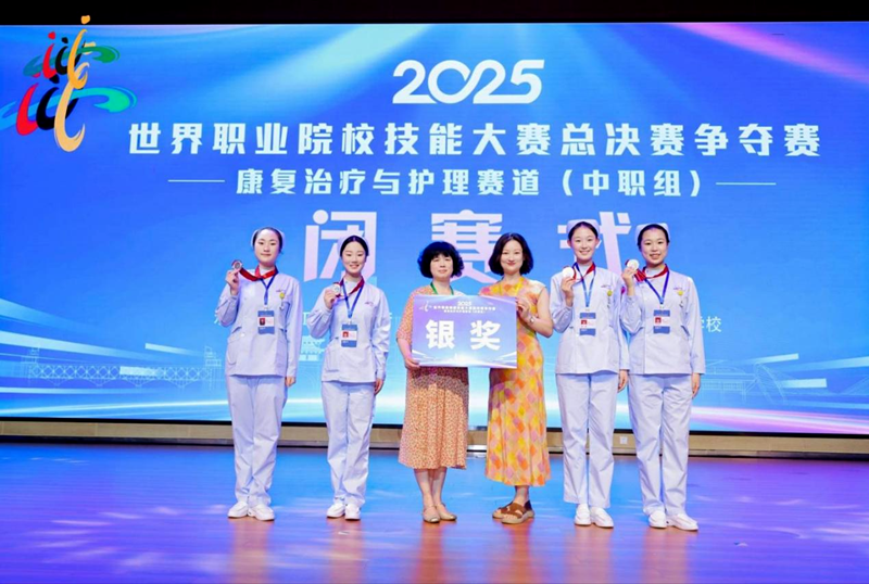 世界职业院校技能大赛由教育部、发展改革委等多部委共同主办,大赛坚持“以高水平赛事推动职业教育高质量发展”,康复治疗与护理赛道(中职)共汇聚了来自全国的86支顶尖代表队,由王艳、马丽两位老师精心指导的学生李佳源、姜昱卉、董相滢、赵佳艺同学组成的参赛队,凭借扎实的专业功底、精心的赛前准备与出色的临场发挥,成功斩获大赛银奖,为学校技能大赛获奖荣誉再添浓墨重彩的一笔!