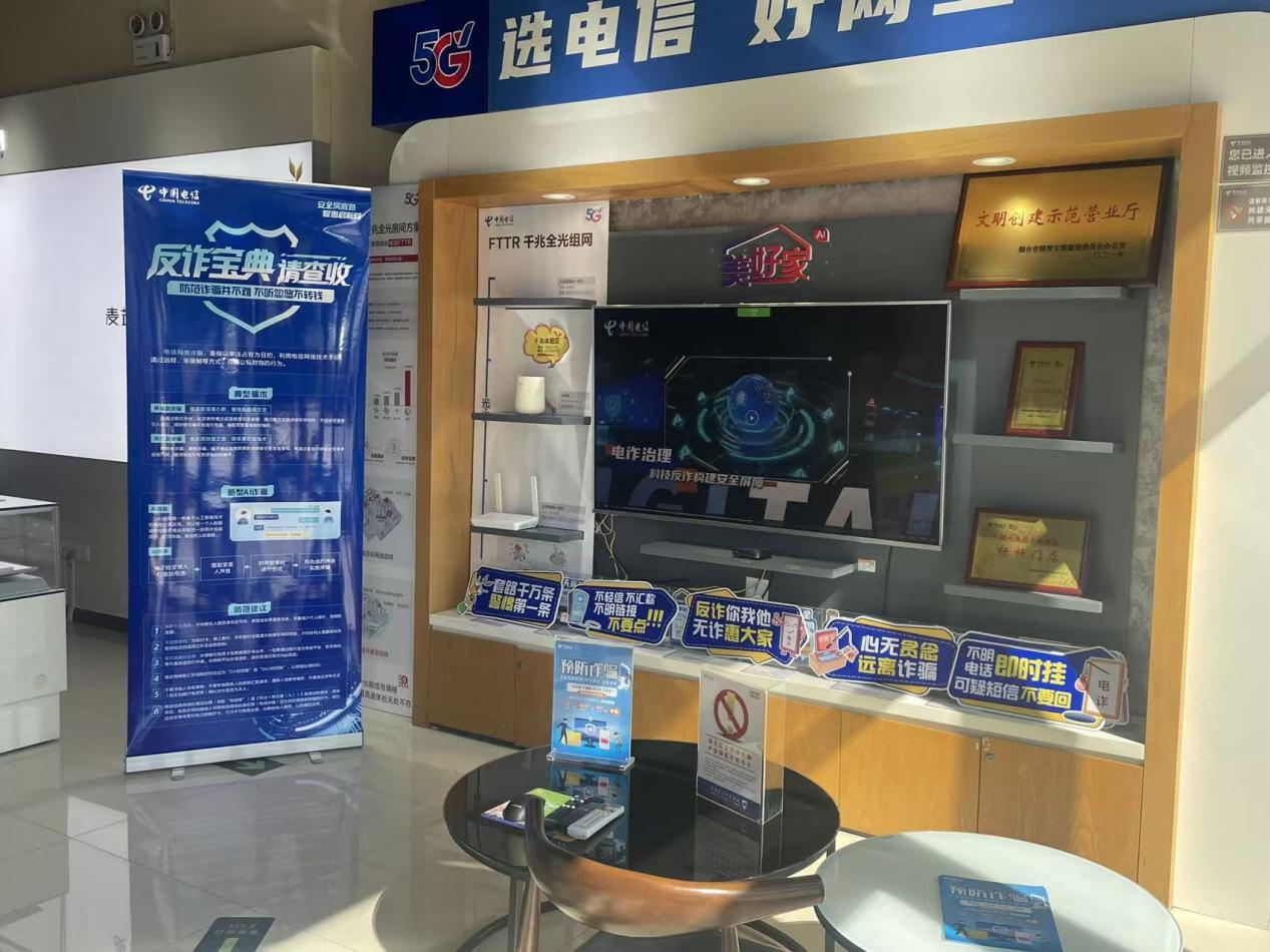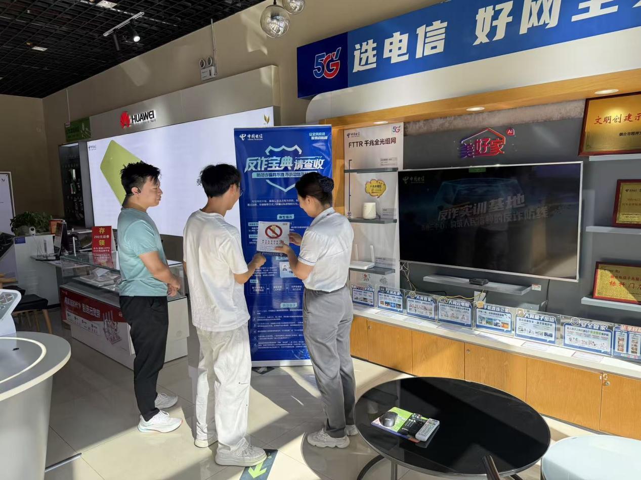 烟台电信以营业厅为核心阵地,创新开展多元化反诈宣传活动,通过电子屏循环播放反诈宣传视频、组织营业厅员工创作结合真实案例的手写反诈海报、打造防诈展厅等,积极宣传反诈知识。针对窗口服务人员开展涵盖理论知识、经典案例和实操技能的专项培训,重点提升其对不同客户的反诈宣讲能力、诈骗线索识别能力及应急处置能力。同时,强化线上推广,通过微信、中国电信通信头条APP广泛传播网络安全知识及网络防诈技能,增强市民网络安全防范意识和自我保护意识,提高网络安全防护能力。通过这一系列“线下阵地宣传+全员技能培训+线上全域传播”的组合举措,烟台电信实现群众与工作人员反诈能力的双向提升,为构建安全稳固的网络环境筑牢防线。