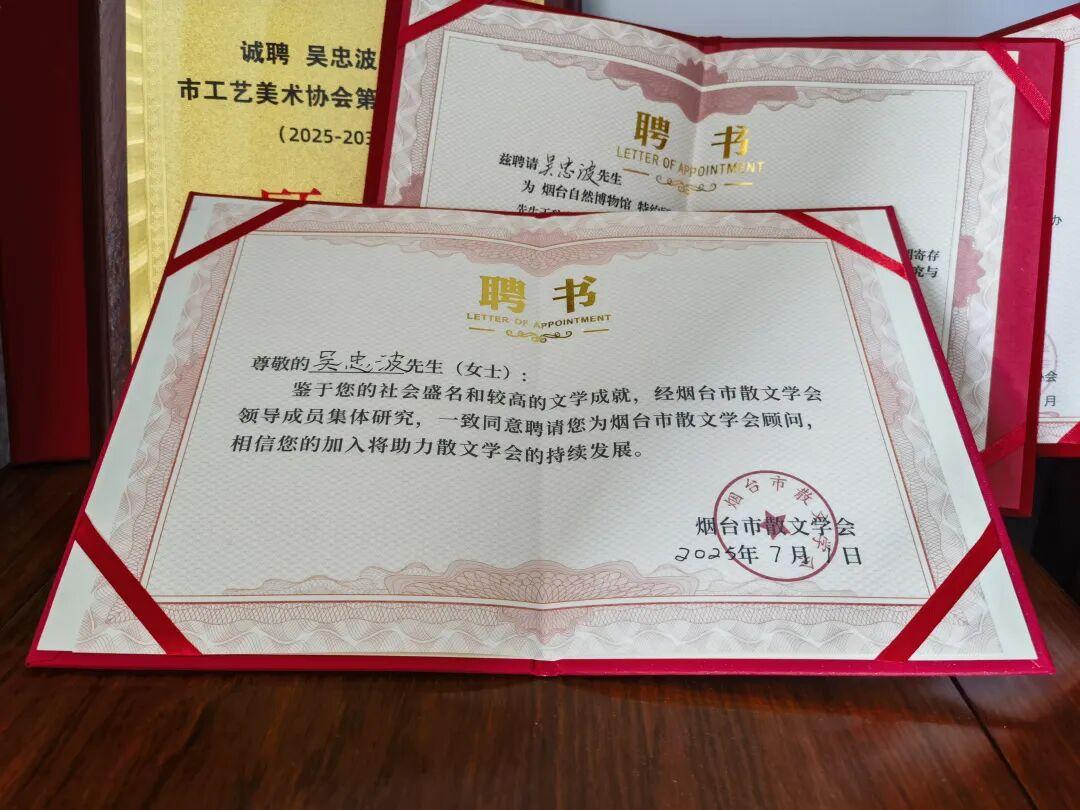 周六,秋烟台。文联艺术中心报告厅。天气微凉,心里却暖。在綦国瑞名誉会长作文学报告前,我与另外三人,登台接过大红证书——烟台散文学会顾问,新老会长亲授,喜悦漫上心头。这是今年以来,我自高校、博物馆、文艺组织接受的第五个聘书。但这一本,我格外珍惜。