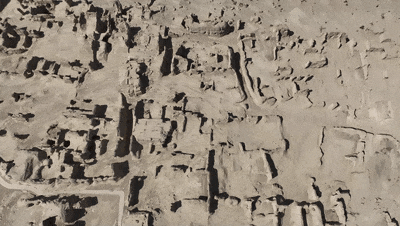 吐鲁番的交河故城是世界上保存最完整、延续时间最长、规模最大的生土结构古代建筑城市。从空中俯视,残留的遗址像是古老的象形文字,更添神秘气息。