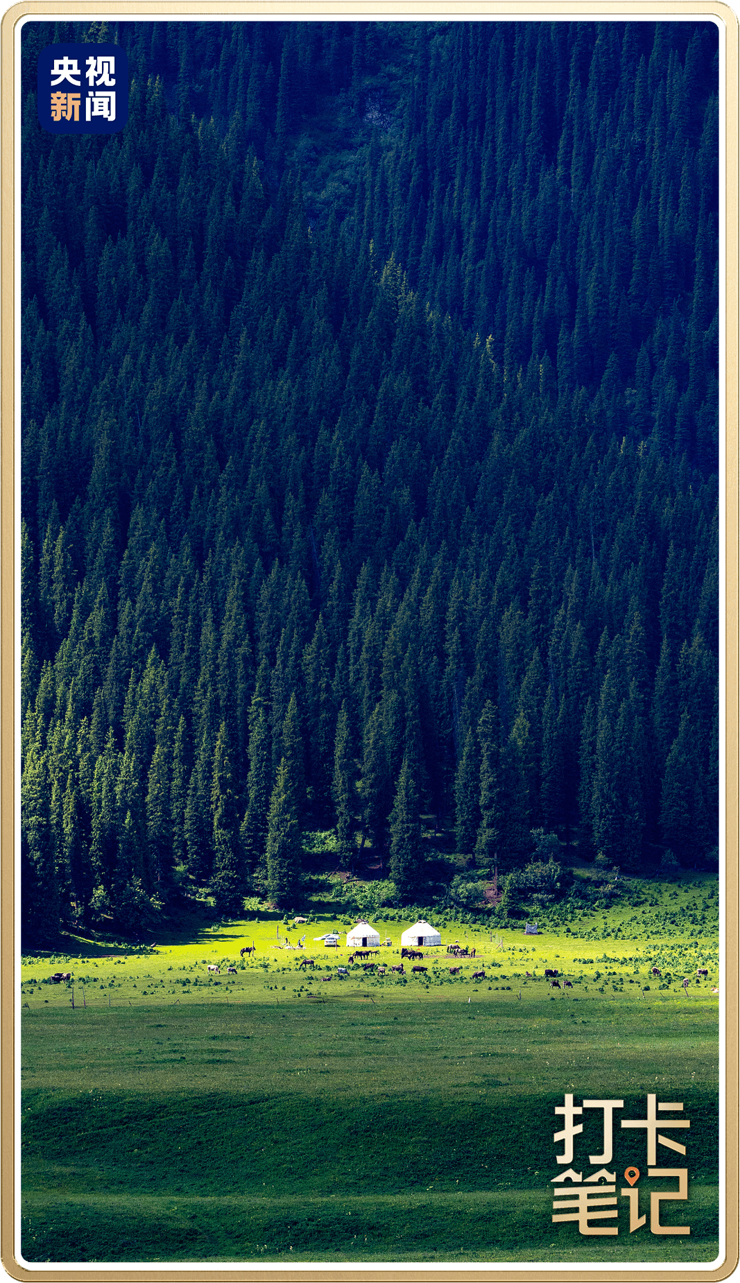 溪边牛羊悠然,毡房散落如星。伊犁大大小小的草原是游客和摄影师的天堂。