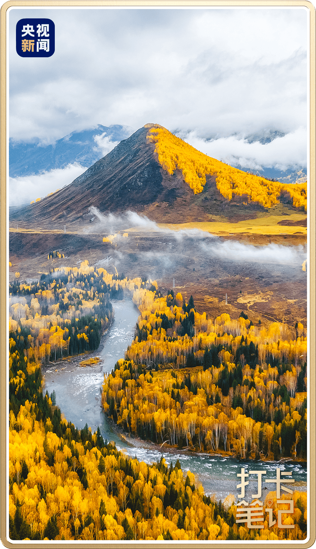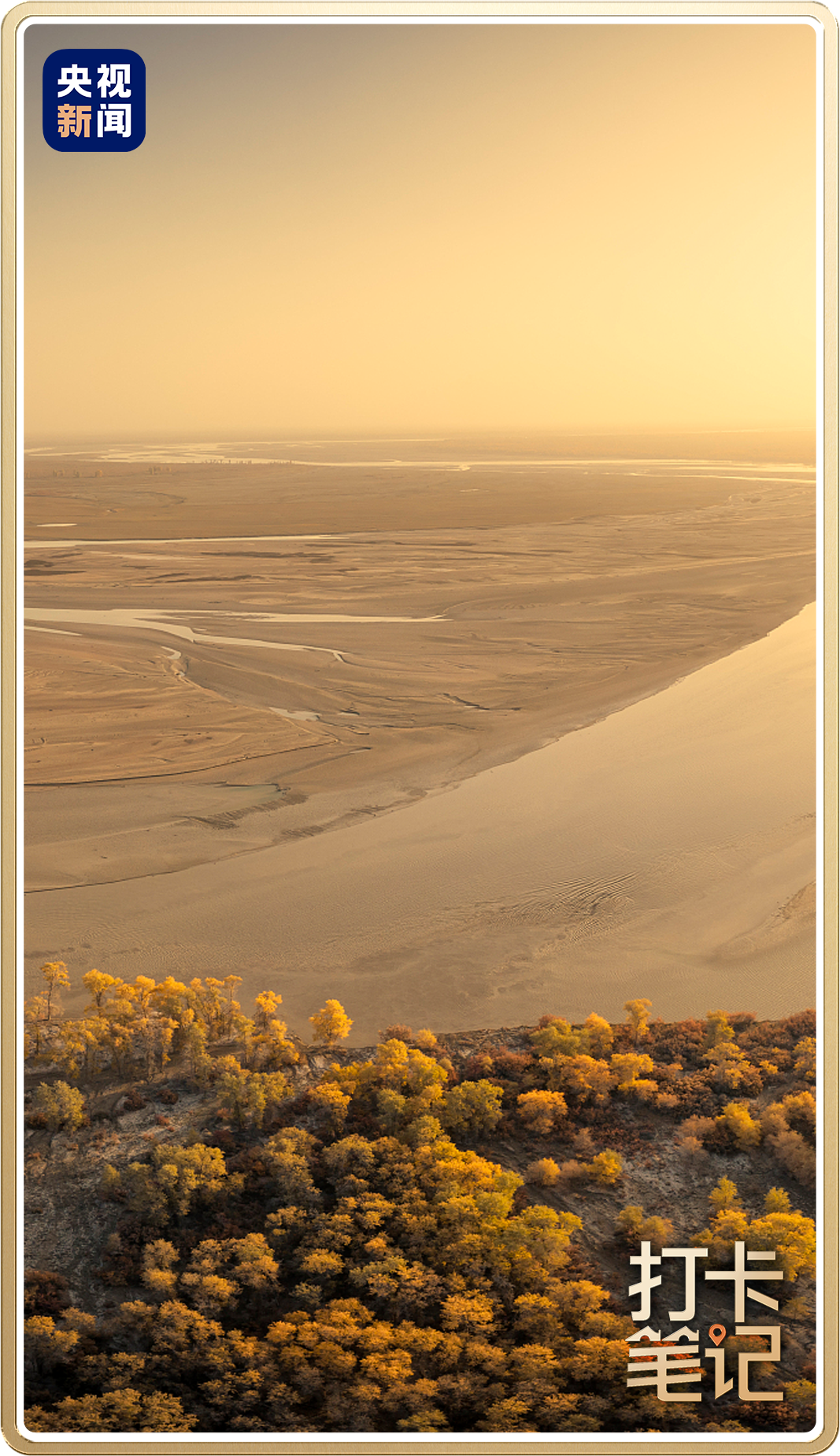 秋季,河流两岸美不胜收,金色、橙黄、红色的植被交织成绚烂多彩的自然画卷。