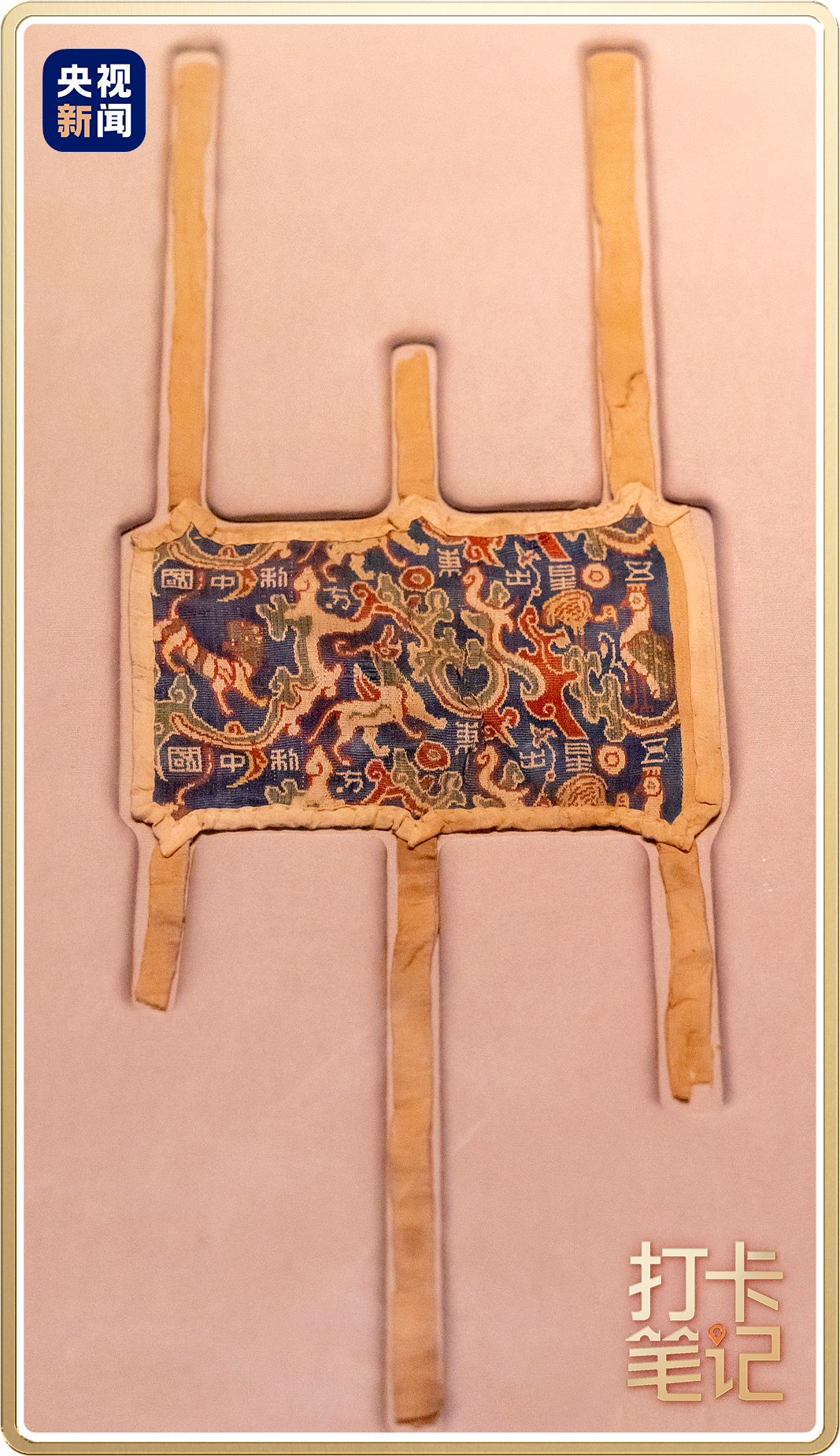在新疆维吾尔自治区博物馆有一件不可不看的镇馆之宝——五星出东方利中国锦护膊,锦护膊上有新疆地区发现最早的“中国”二字。