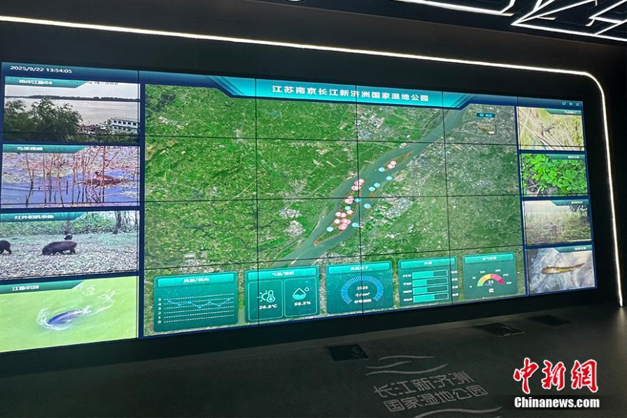 南京长江新济洲国家湿地公园内的智慧大屏。高萌 摄