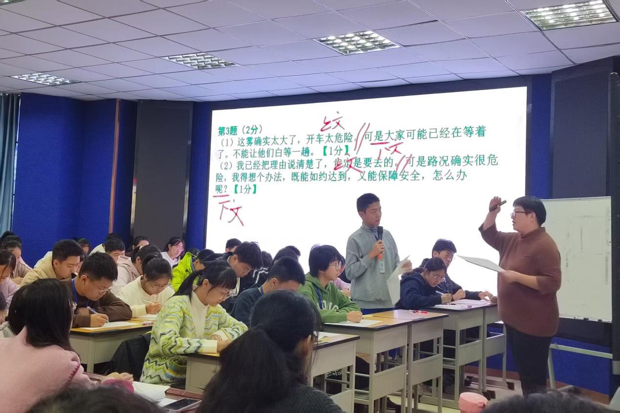 贺老师还对2025年中考语文情况作了深入分析,明确提出今后教学工作的重点方向:一要重视培养学生的创造力和想象力,为学生提供个性化发展空间;二要鼓励教师善用AI技术,让科技助力课堂提质增效;三要发挥积累性题目的优势,夯实学生文化底蕴;四要深入研究真题,把握命题规律。贺老师强调,教师要多花时间在教学研究和课堂授课上,突出教研与教师专业成长联动。