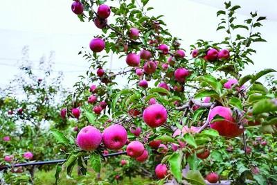 走进小城子镇的苹果园,红彤彤的苹果缀满枝头。